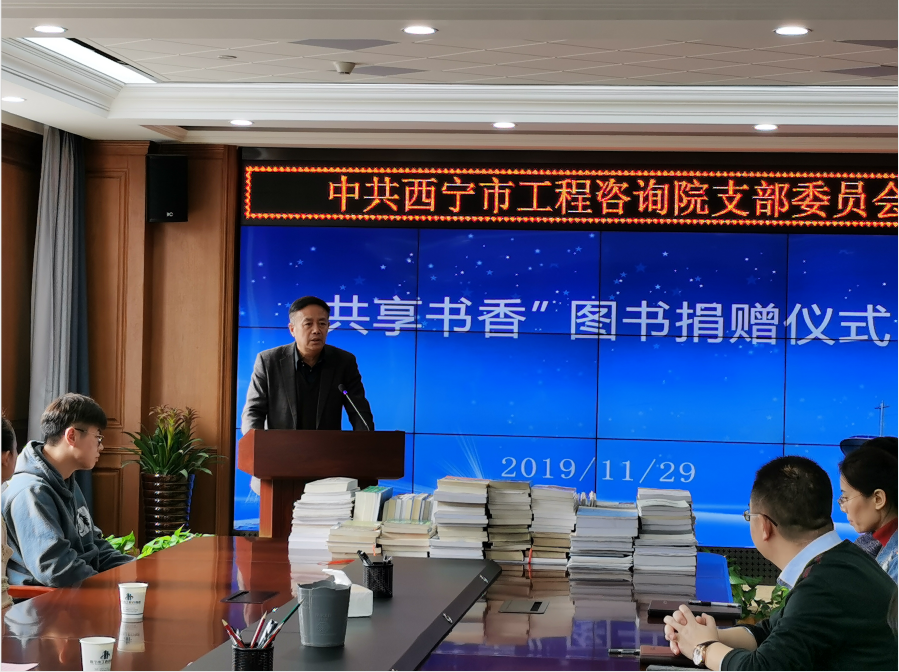 為提升全院職工文化素養(yǎng),努力營造濃郁的讀書學(xué)習(xí)氛圍,2019年11月29日下午在西寧市工程咨詢院10樓會議室舉行以“共享書香”為主題的圖書捐贈儀式。西寧市工程咨詢院顧問李勇、院長李廷君、副院長蘇星、副院長羅文芳及全體職工出席活動。由西寧市工程咨詢院顧問李勇老師向咨詢院捐贈圖書200余冊,包括宏觀經(jīng)濟(jì)學(xué)、經(jīng)濟(jì)研究類等方面的圖書。