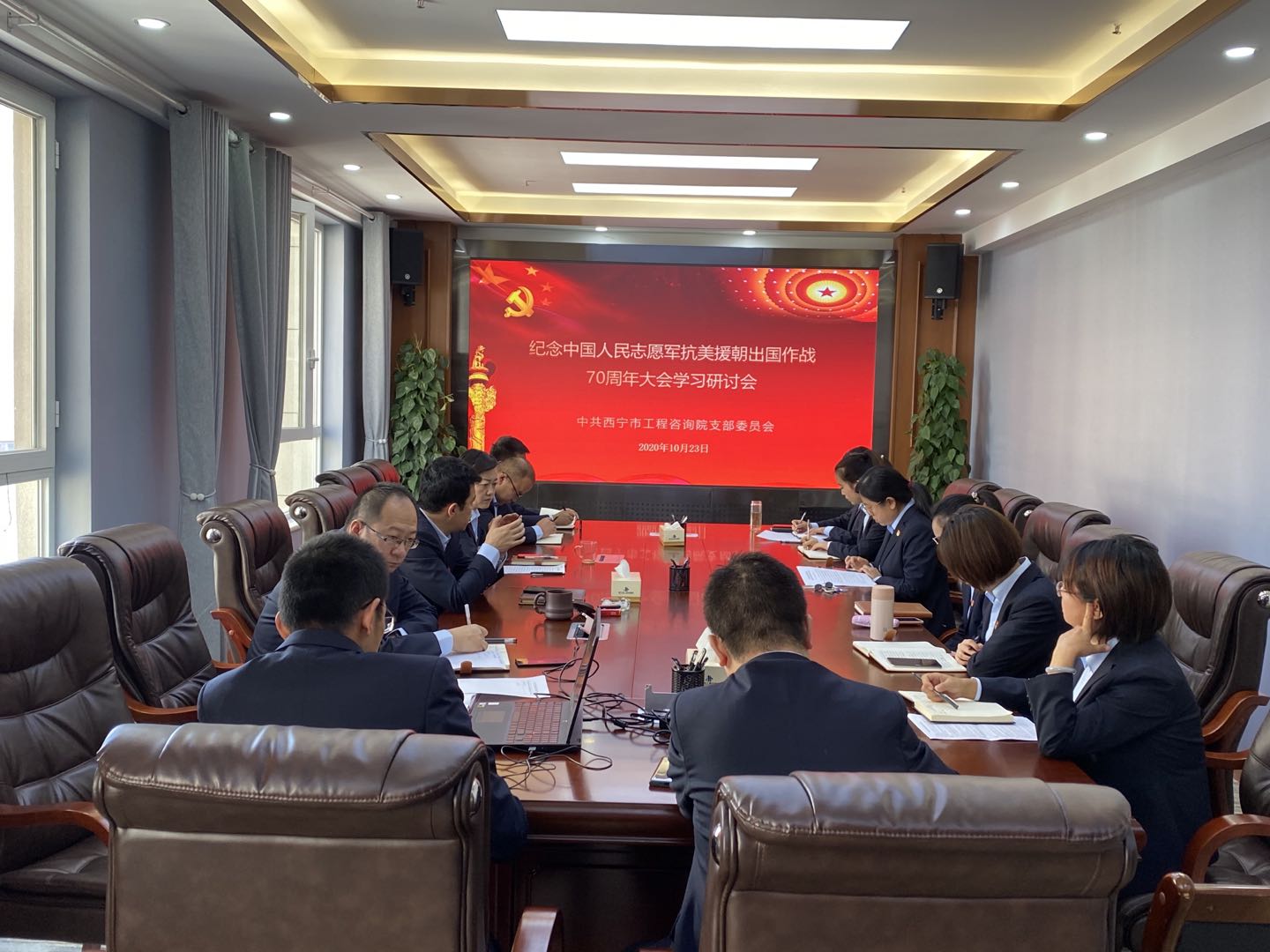 銘記歷史,砥礪前行,10月23日上午西寧市工程咨詢院黨支部組織支部黨員、預備黨員、入黨積極分子及院中層以上管理人員觀看紀念中國人民志愿軍抗美援朝出國作戰(zhàn)70周年大會直播,并開展交流研討會。